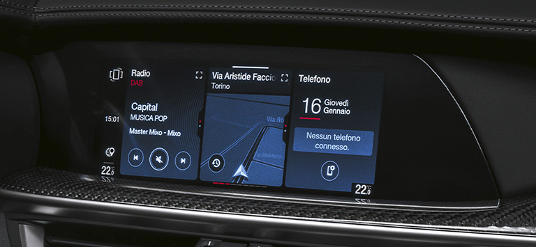 يتضمن نظام المعلومات الترفيهية في ألفا روميو ستلفيو كوادريفوليو شاشة عرض متعددة اللمس قياس 8.8 إنش.